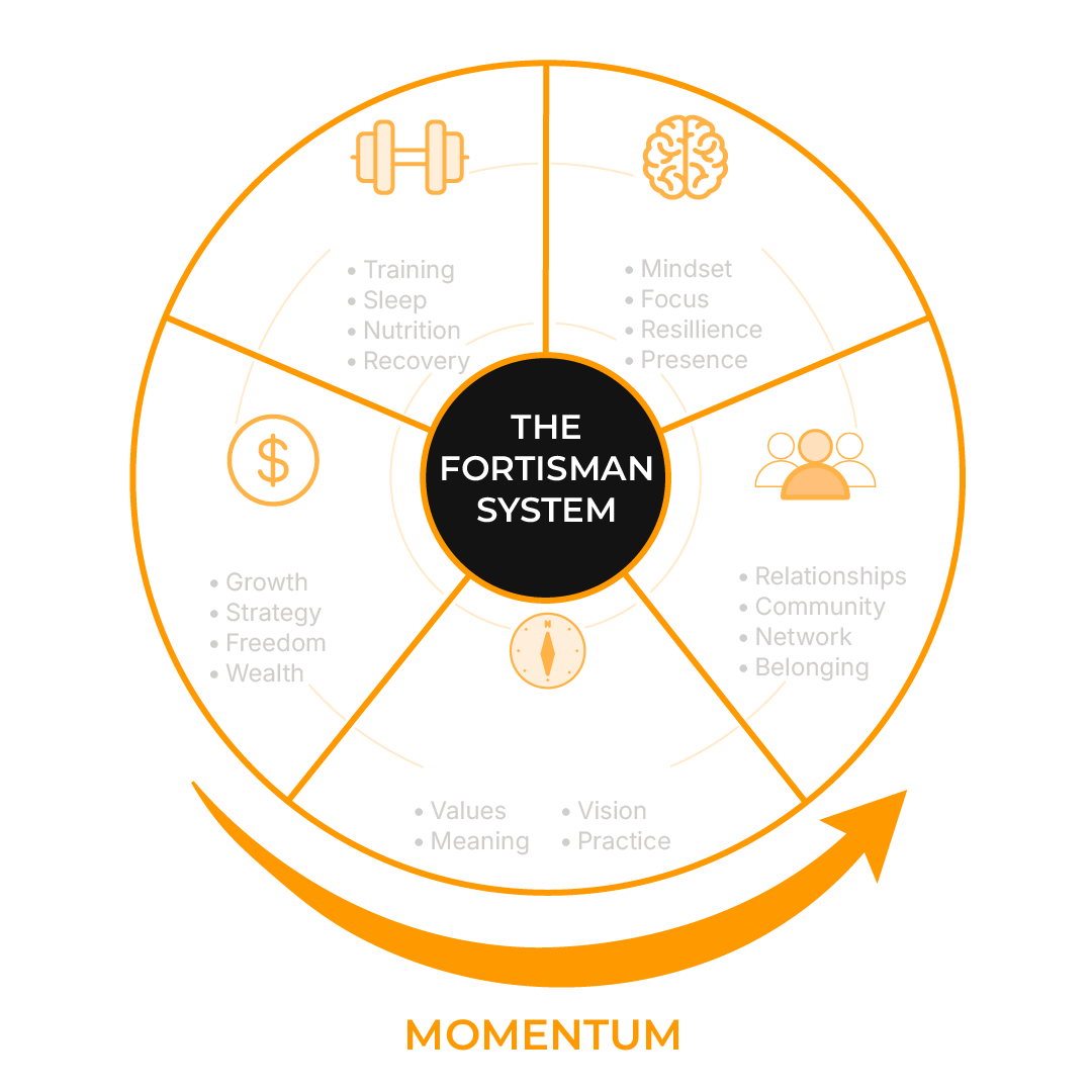 Build usable physical power, sharpen mental focus, amplify your relationships, align every decision with your values, and put your money to work. FortisMan locks these five forces into one program—planned, tracked, and recalibrated every four weeks.